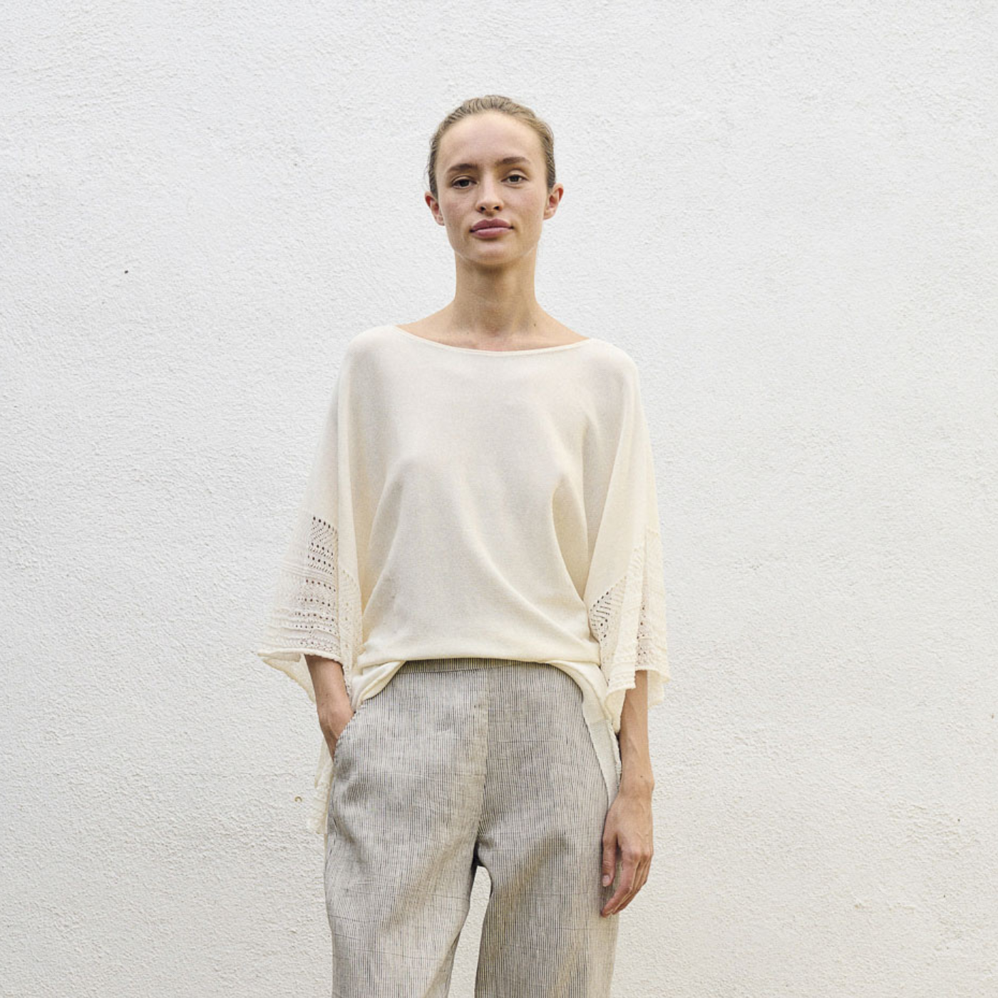 THIS COLLECTION CAPTURES THE ESSENCE OF SUMMERS BATHED IN LIGHT. - Inspired by a summer breeze, it unveils a universe rich in detail, BLENDING ARTISANAL TRADITION, TECHNICAL INNOVATION, AND A SAVOIR-FAIRE that has established the brand as a global benchmark in KNITWEAR.