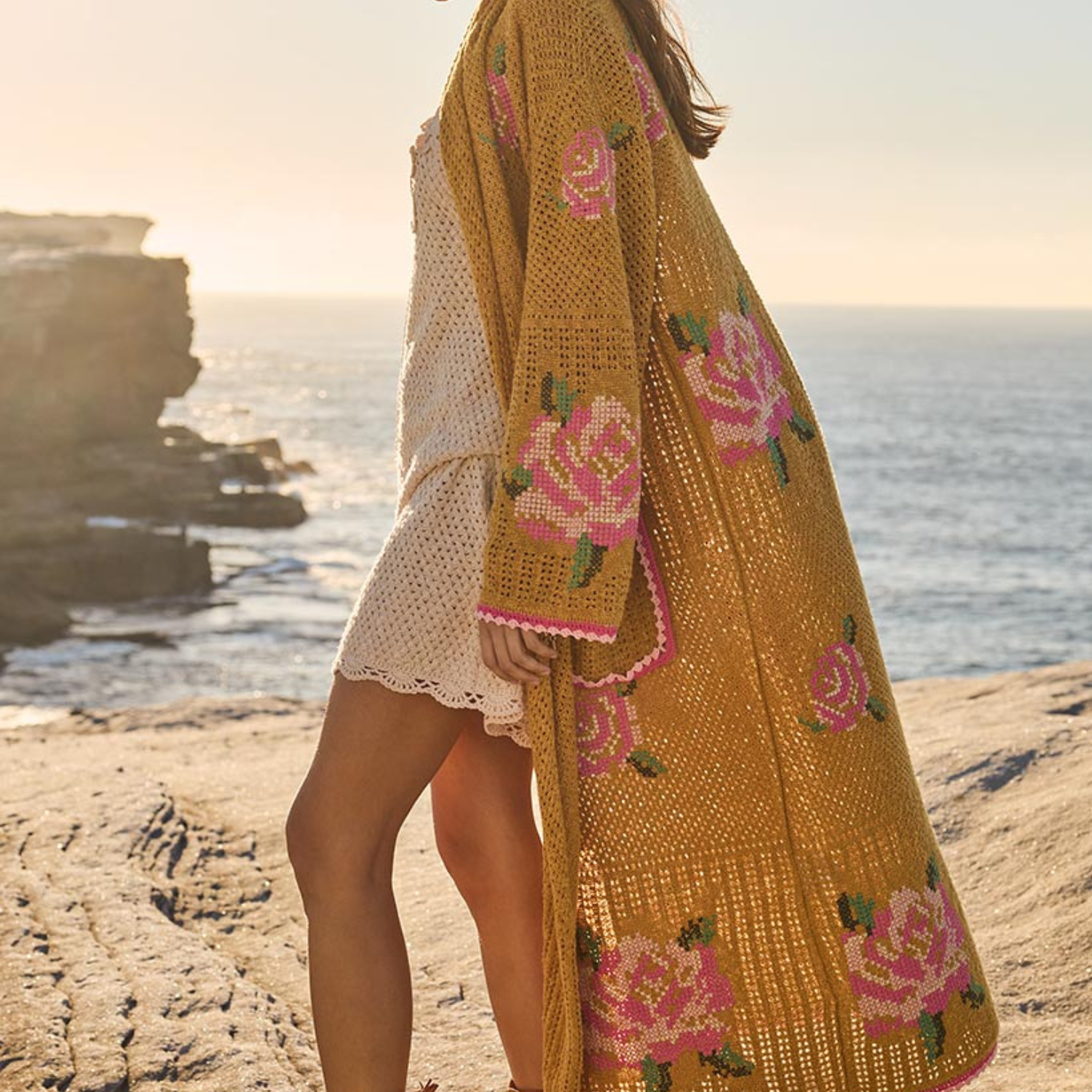 The Coastal Granny Maxi Cardigan in sunny Mustard embodies charm and play. Crafted from a breathable blend of linen and organic cotton, this true knit maxi cardigan features delicate embroidered flowers and handy front pockets. It’s the perfect throw-on for layering with a touch of vintage-inspired fun and effortless style. A fresh new hue in our beloved best-selling design!