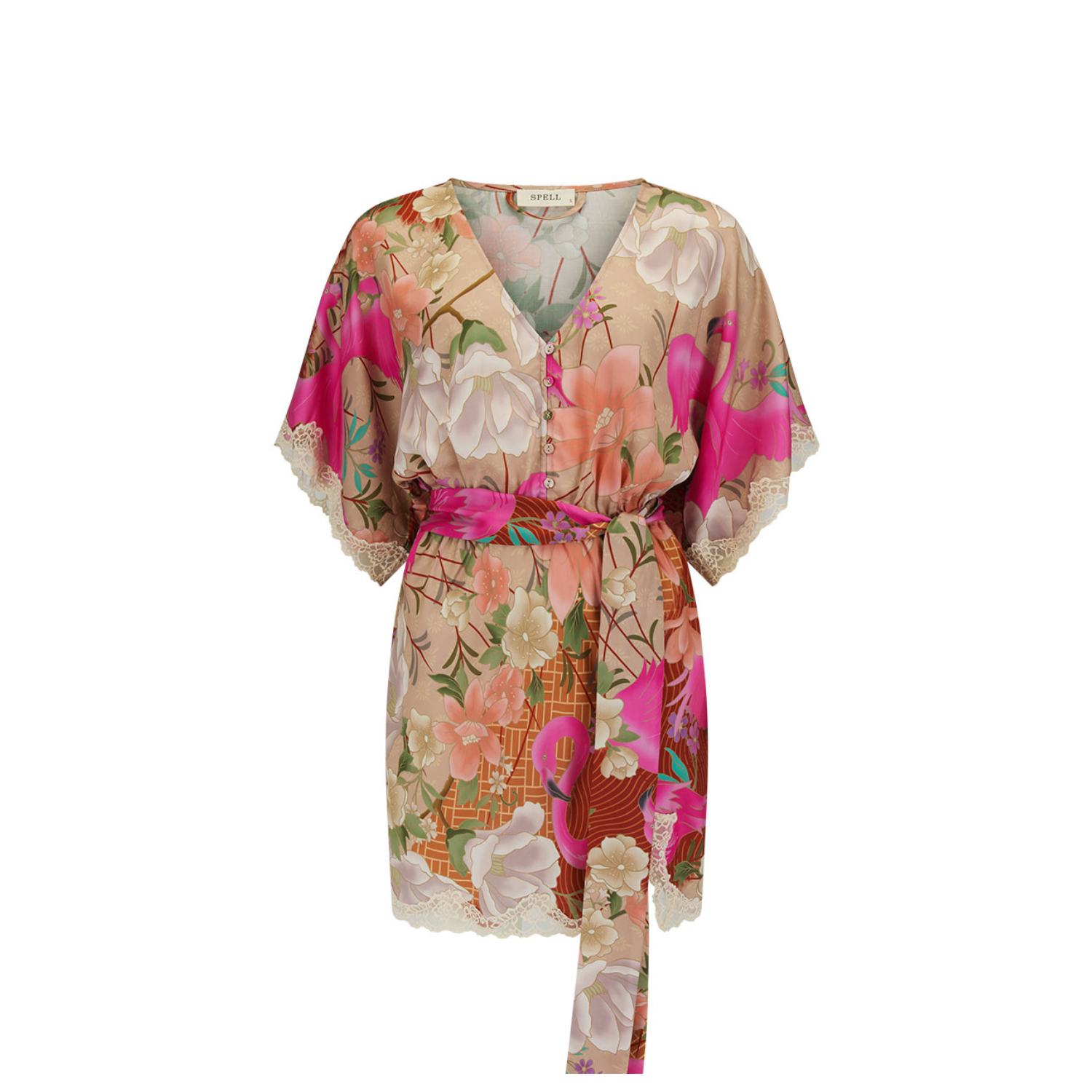 The Floridian Lace Mini Dress in vibrant coral brings a playful charm with its delicate lace trim and flattering front V-neck. Crafted from 100% TENCEL™ Lyocell, this breezy mini features a custom Spell allover print and a self-fabric waist tie to highlight your silhouette. Light, unlined, and designed for warm days, it’s the perfect dress to dance through sunny moments with flair.