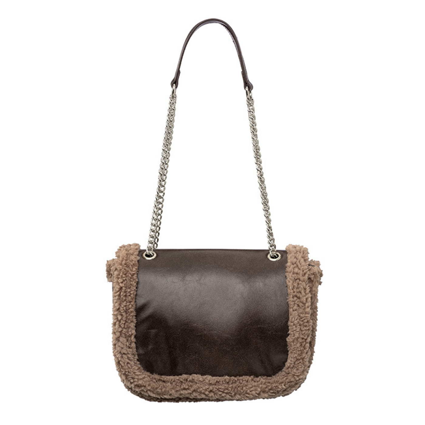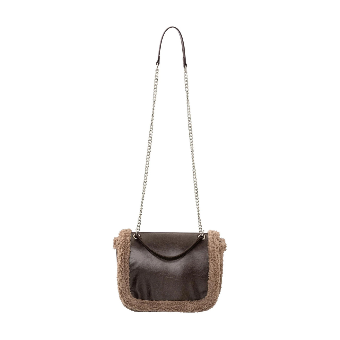 Yaya Chocolate Brown Crossbody Bag with Fur