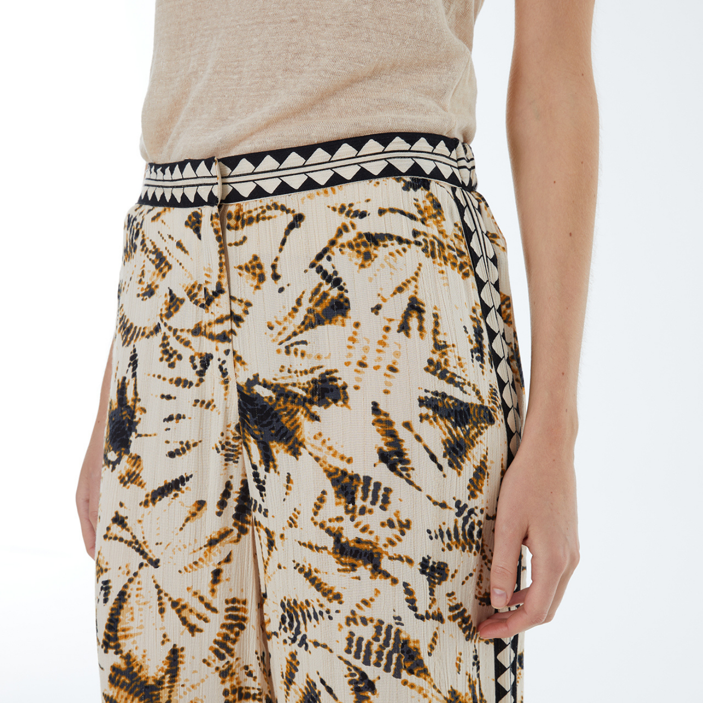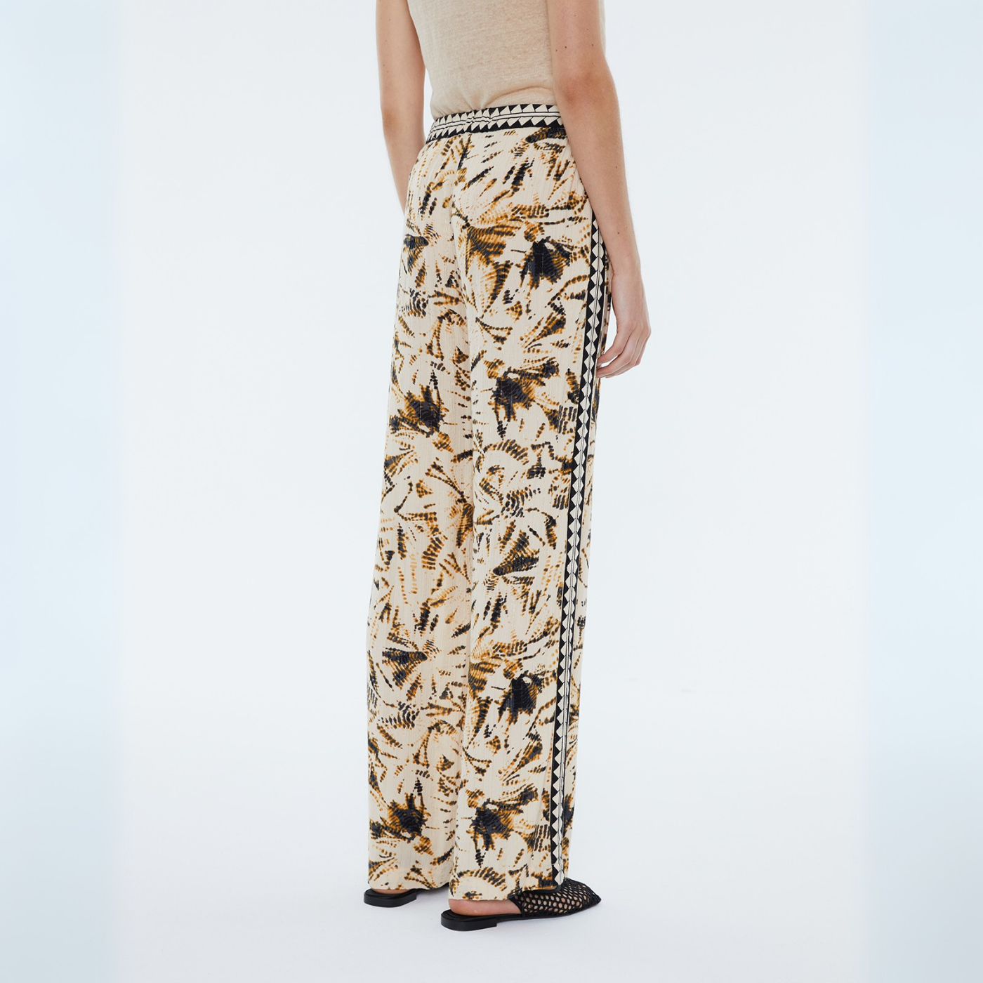 Andam Beige Printed Pants with Geometric Patterned Waistline
