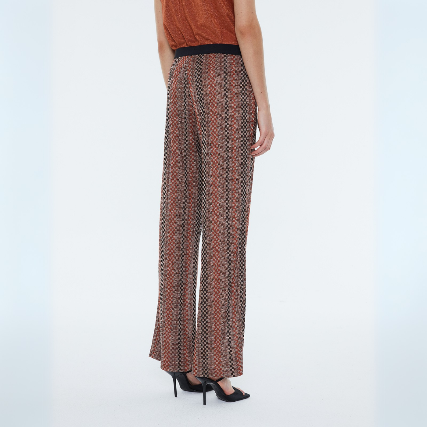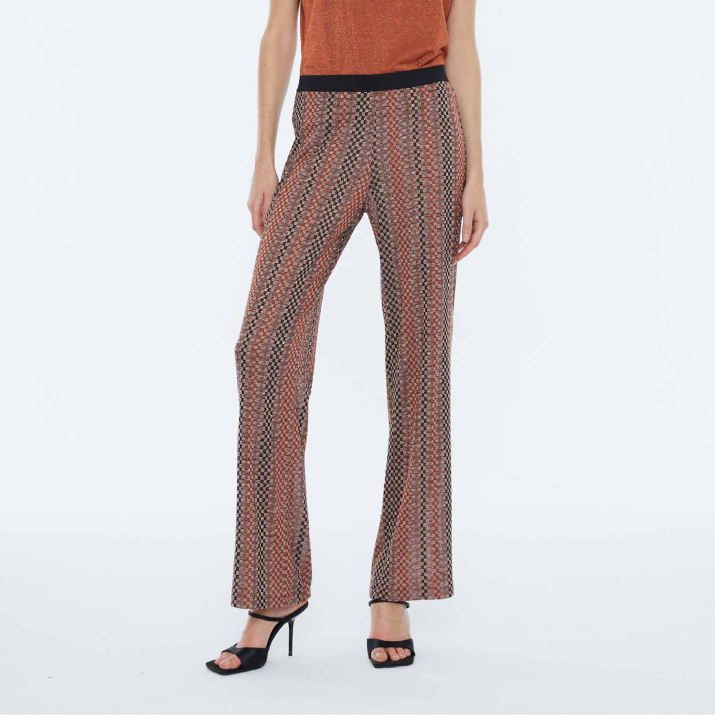 Andam Flared Printed Camel Pants with Elastic Waistband