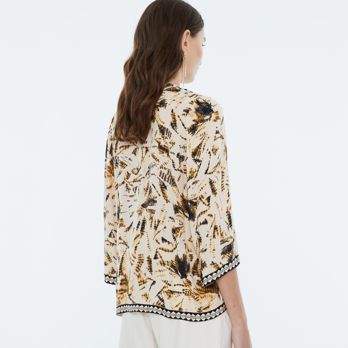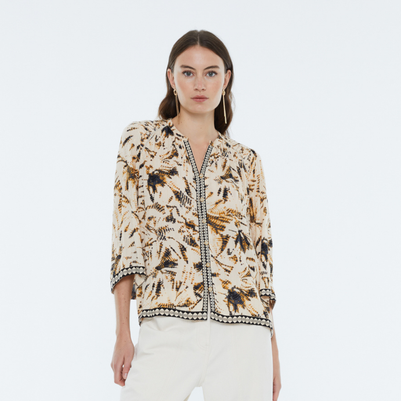Andam Beige and Brown Printed Shirt with Geometric Neckline