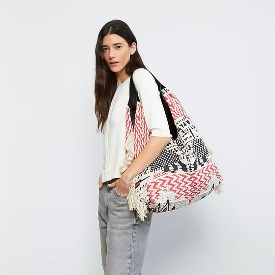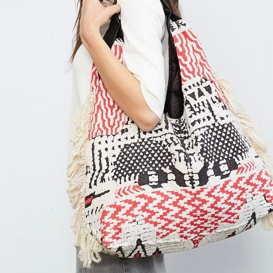 Smashed Lemon Woven Sand Bag with Shell Details