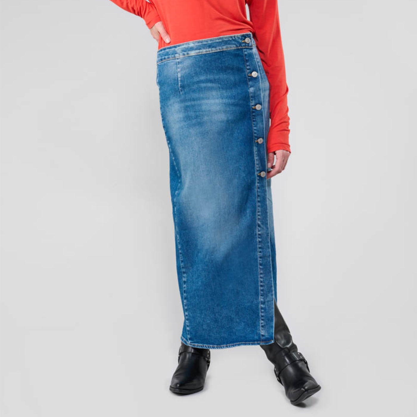 Le Temps Des Cerises Button-Detail Raphi Jean Skirt