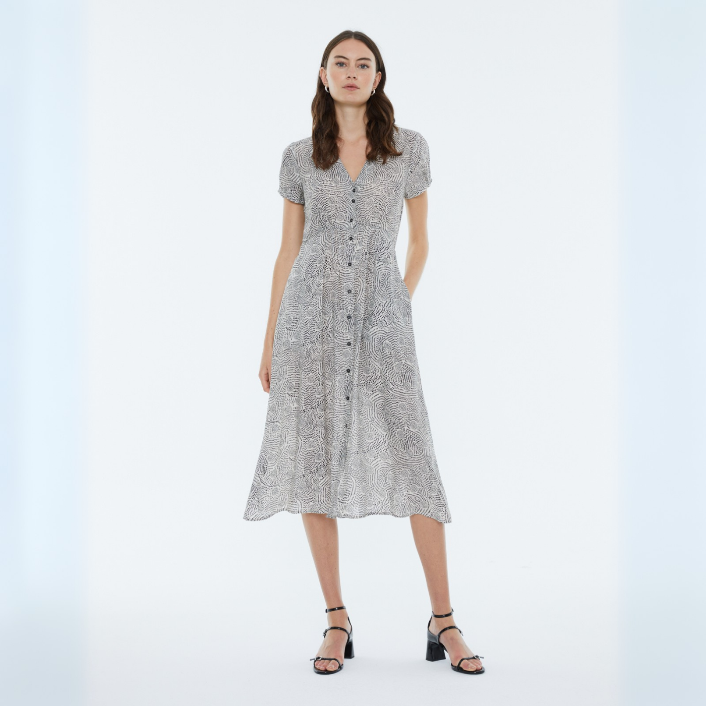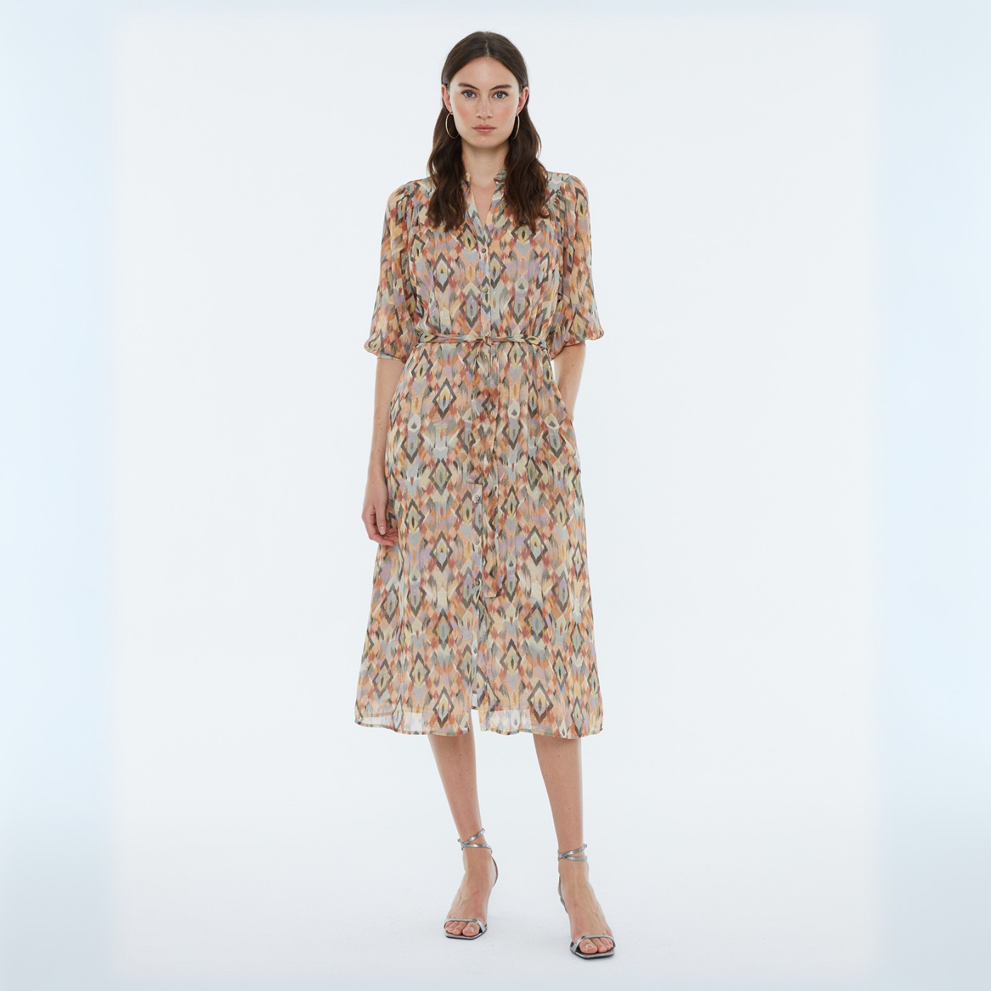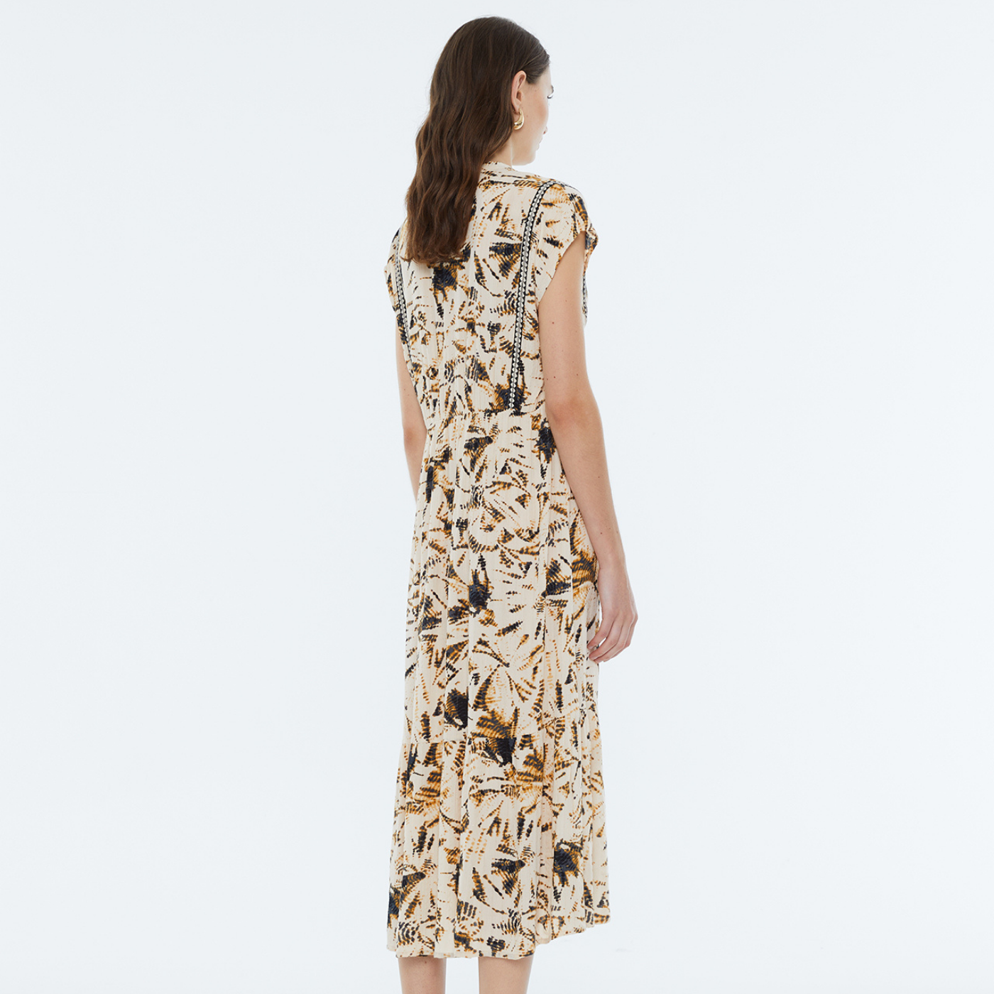Andam Beige and Brown Printed Dress with Button Detail - 22