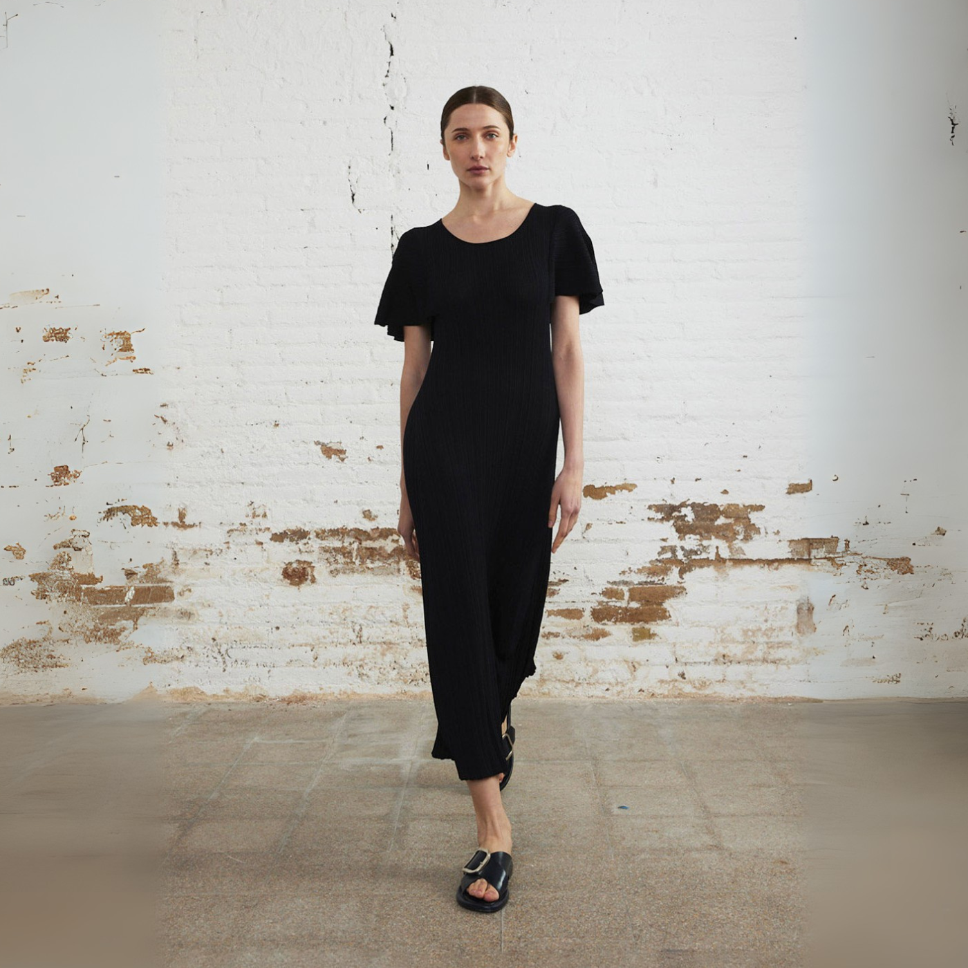 Sita Murt Balck Short Sleeve Ribbed Dress