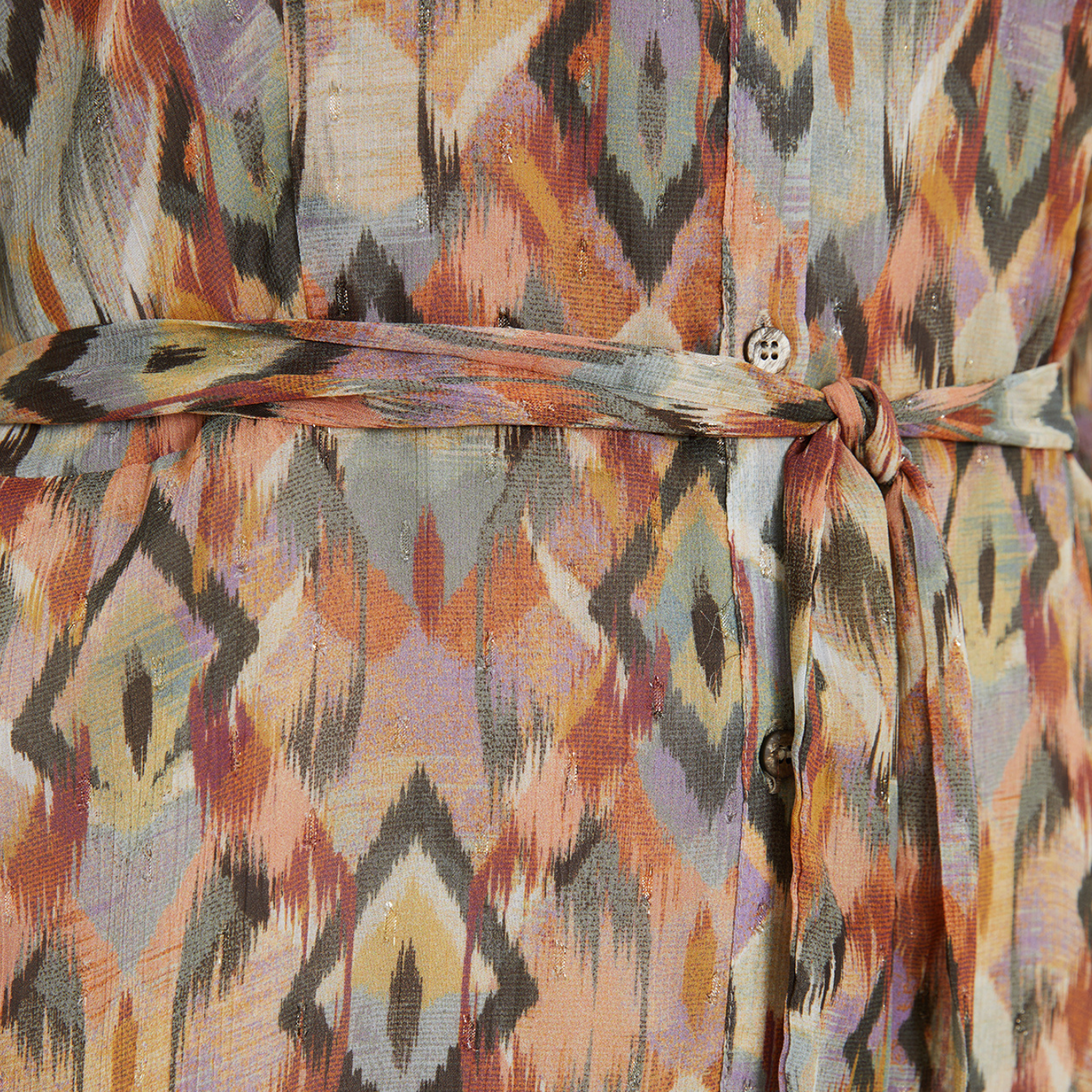 Smashed Lemon Long Off-White Multicolured Belted V-Neck Dress