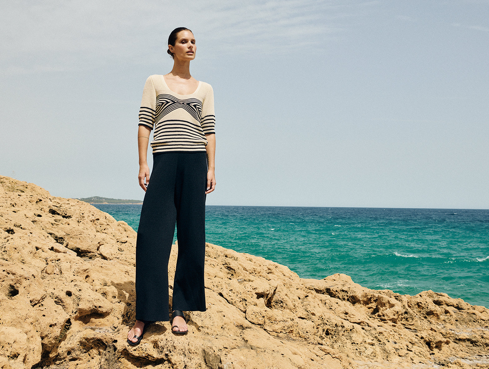 THIS COLLECTION CAPTURES THE ESSENCE OF SUMMERS BATHED IN LIGHT. - Inspired by a summer breeze, it unveils a universe rich in detail, BLENDING ARTISANAL TRADITION, TECHNICAL INNOVATION, AND A SAVOIR-FAIRE that has established the brand as a global benchmark in KNITWEAR.