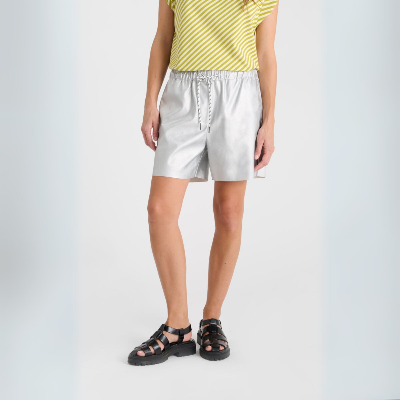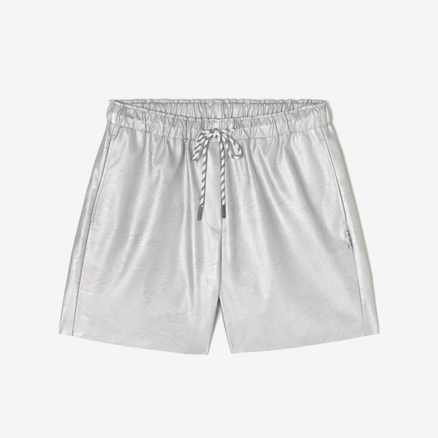 Le Temps Des Cerises Silver Nylu Shorts with Elastic Waistband