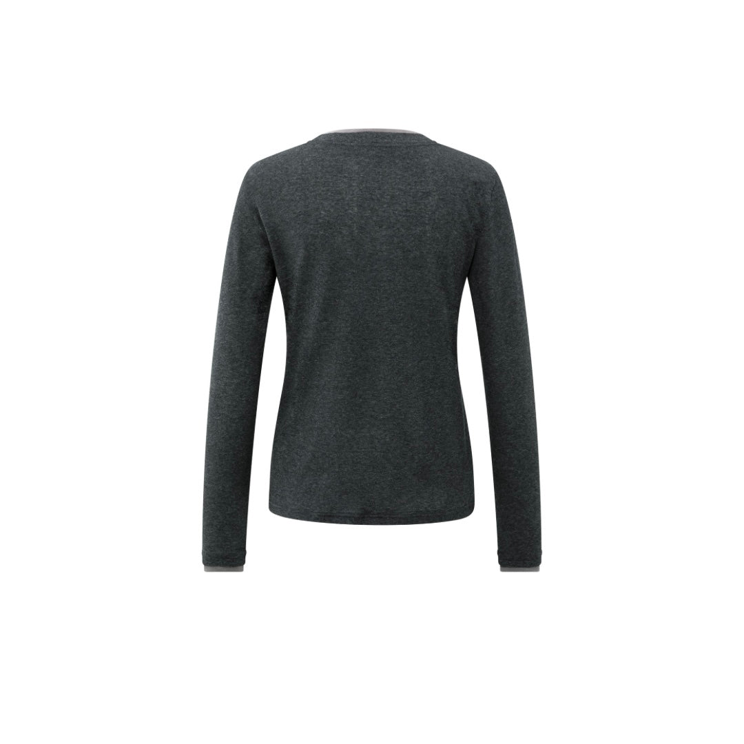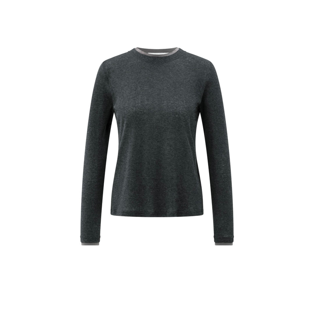 YAYA Anthracite Melange Long Sleeve Top With Suedine Trim Neckline
