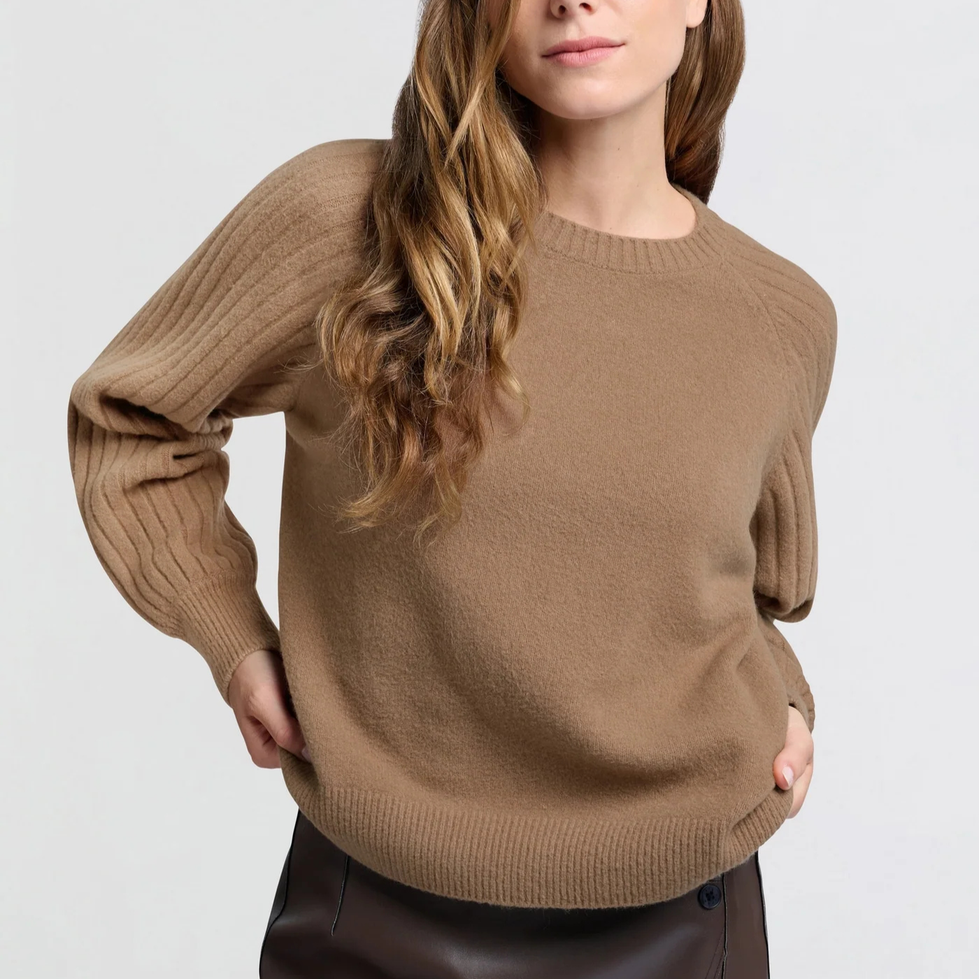Yaya Chocolate Malt Taupe Ribbed Sweater