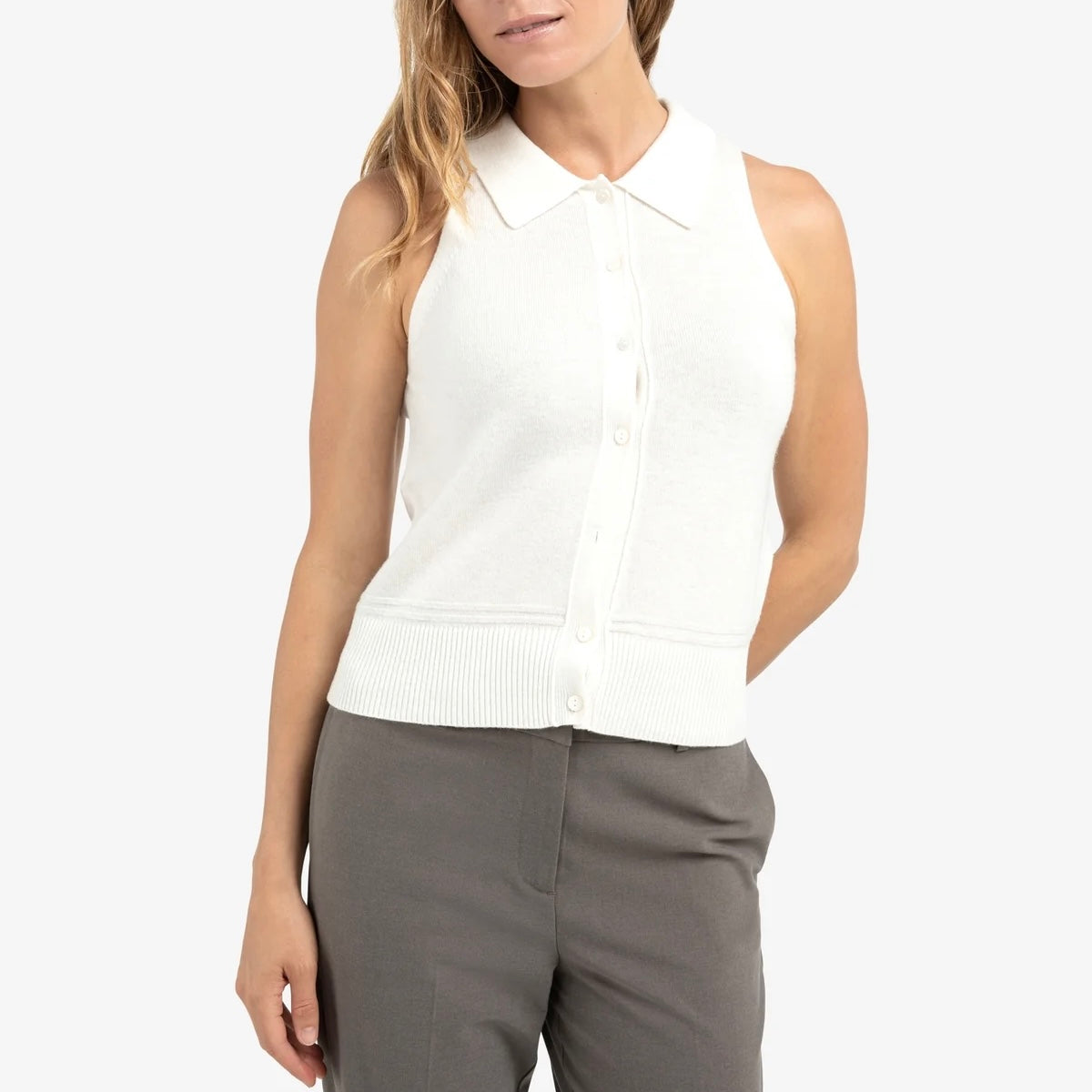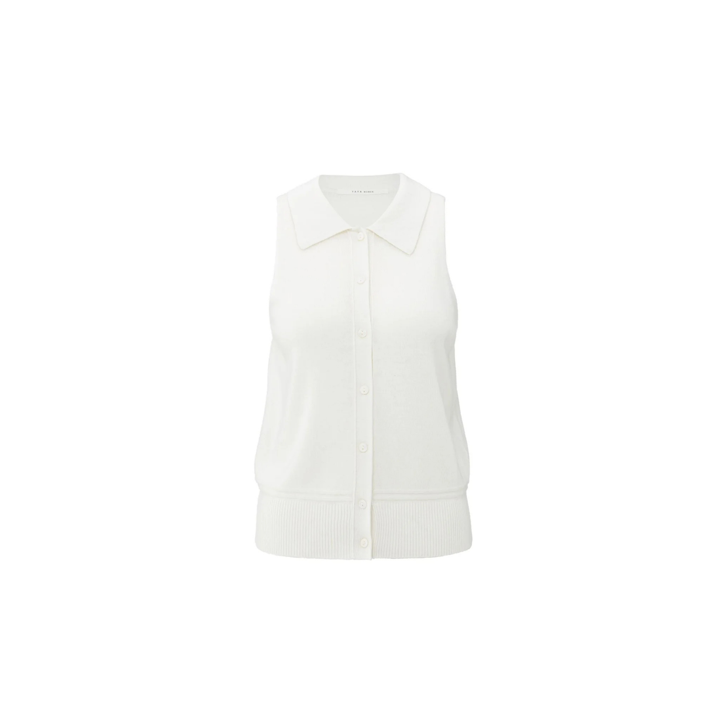 YAYA Early Frost White Sleeveless Cardigan With Collar
