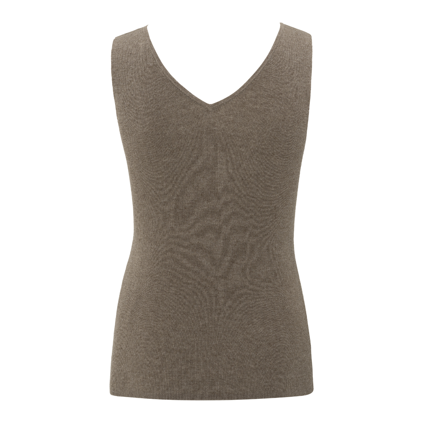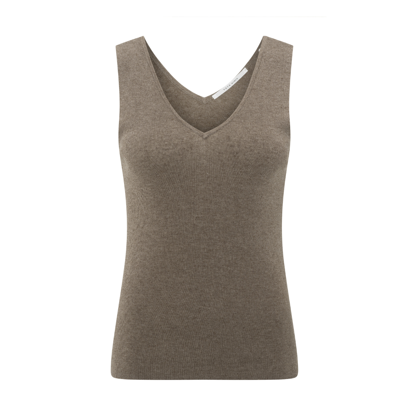 Yaya Greyish Brown Melange Fine Rib Knitted Tanktop