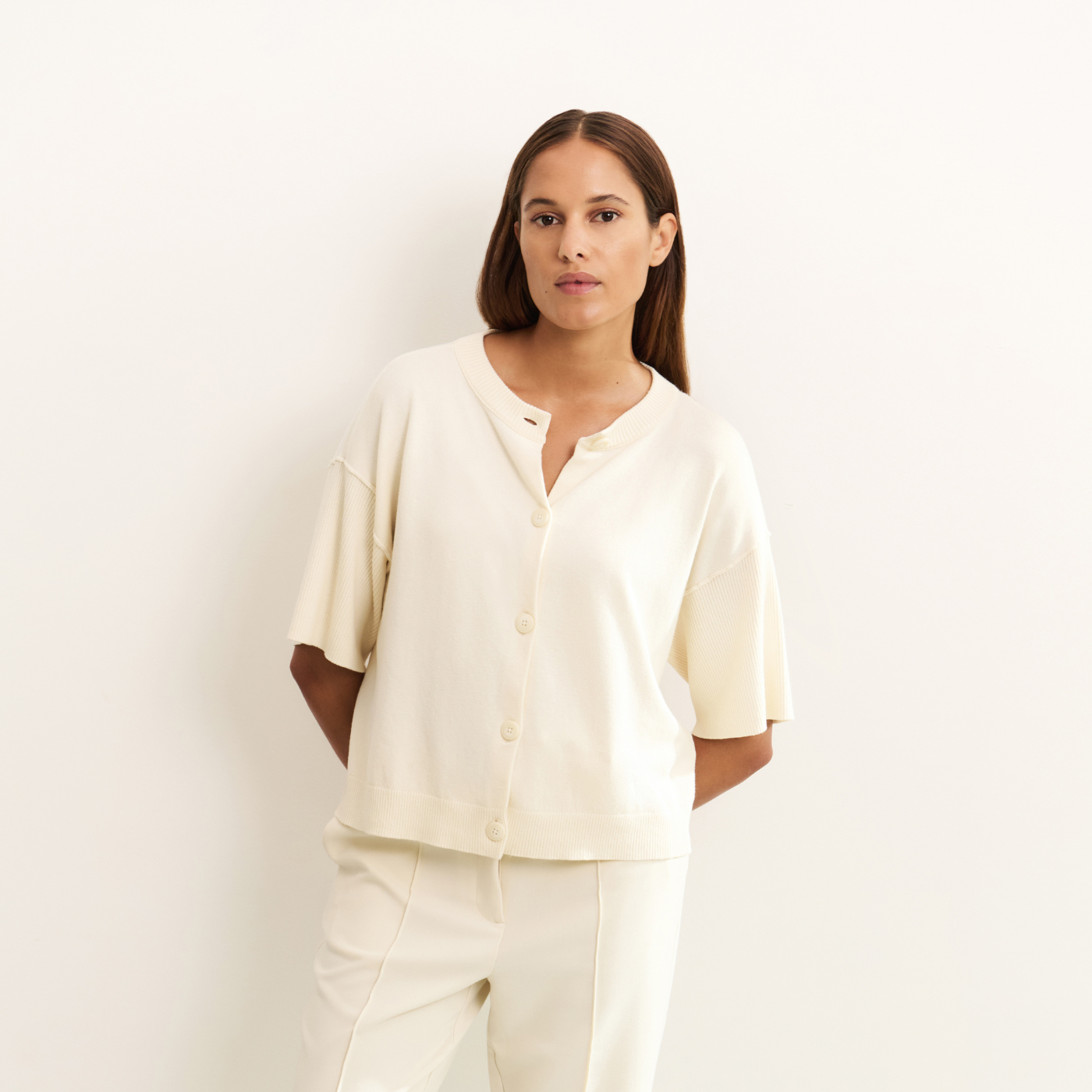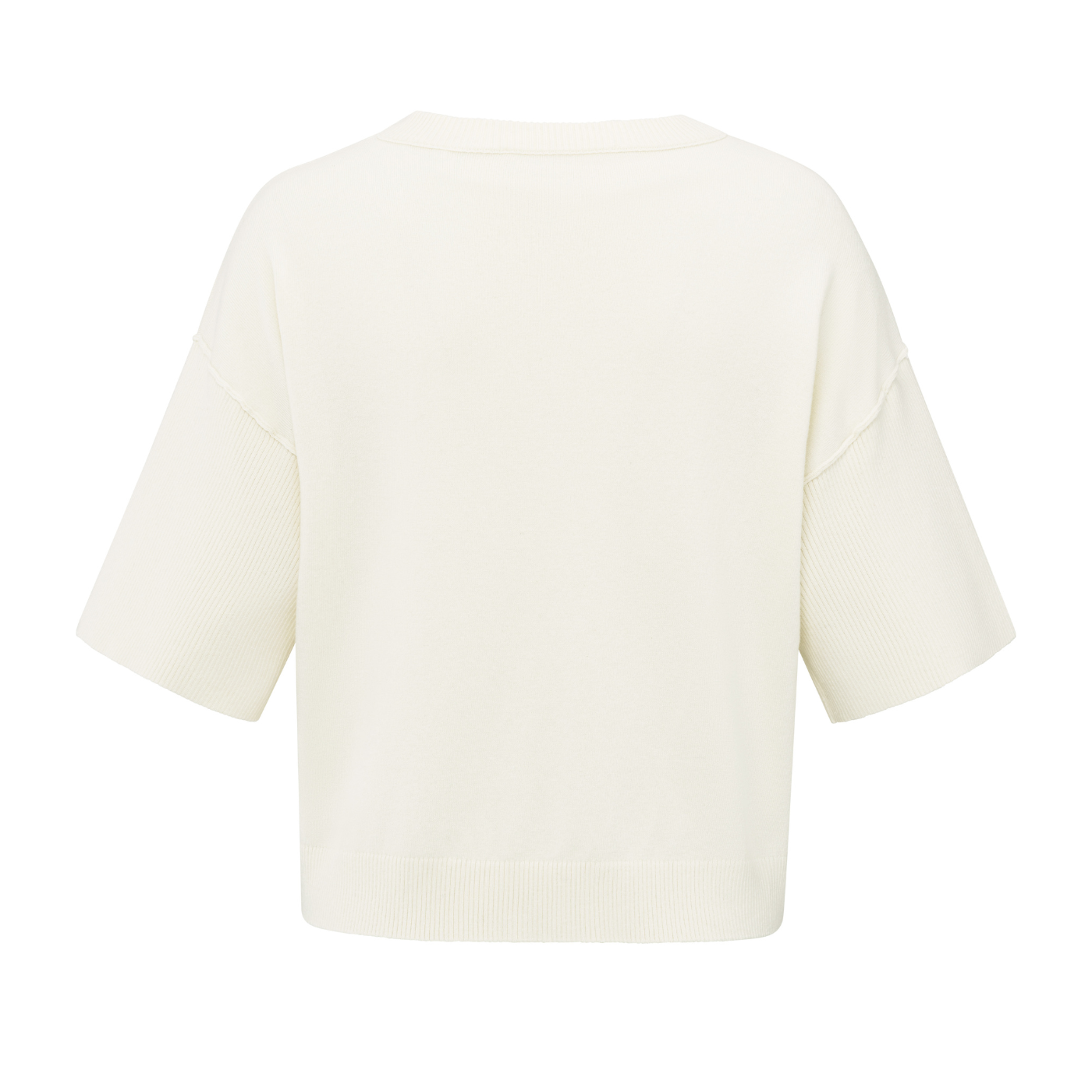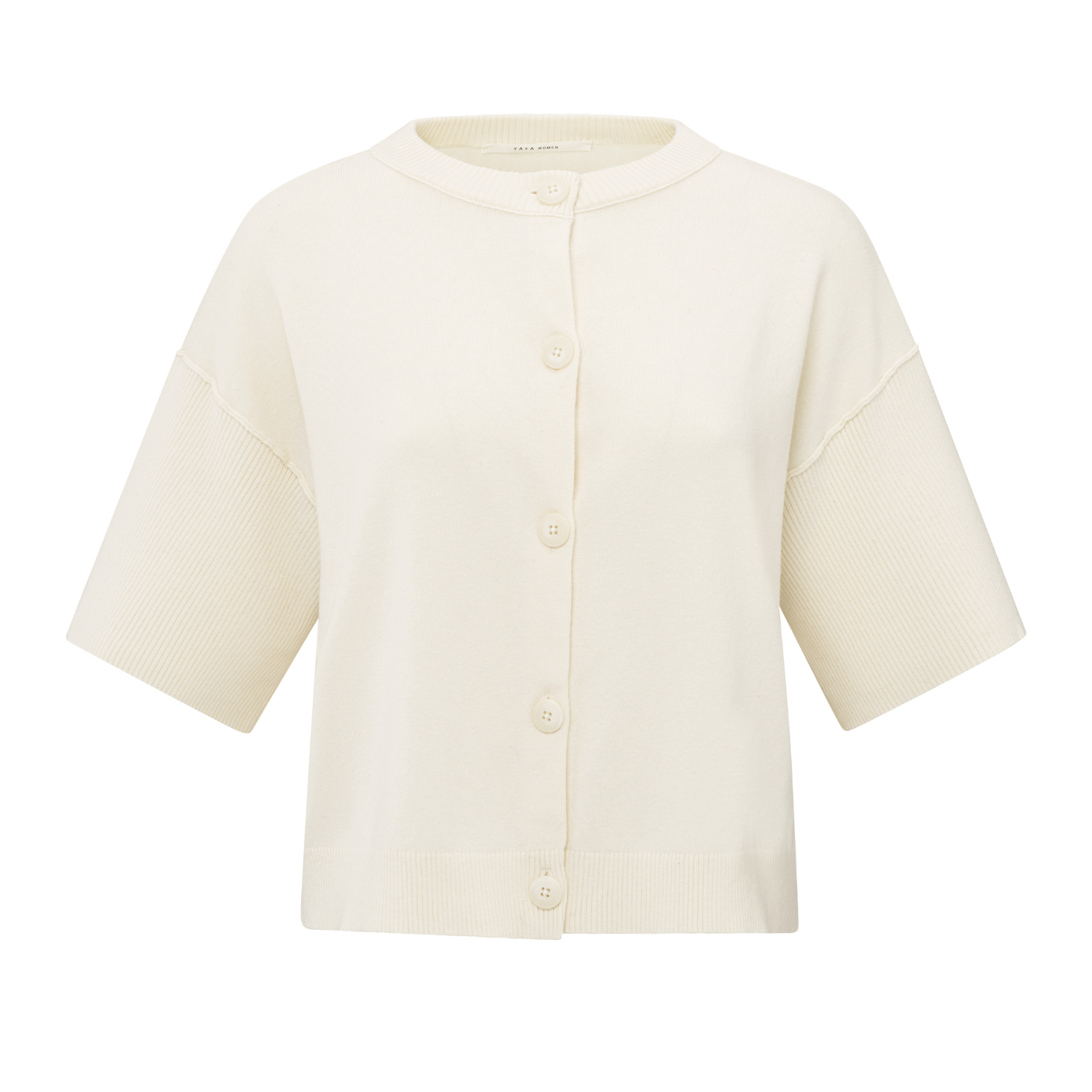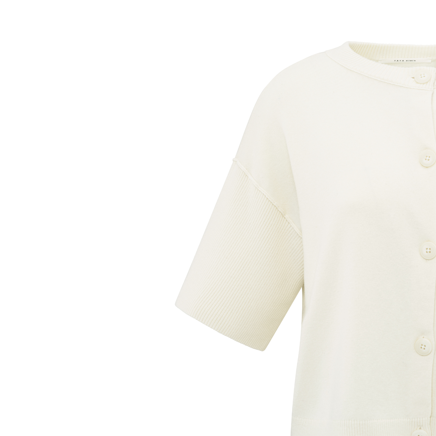 Yaya Off White Knit Short Sleeve Rib Stitch Cardigan