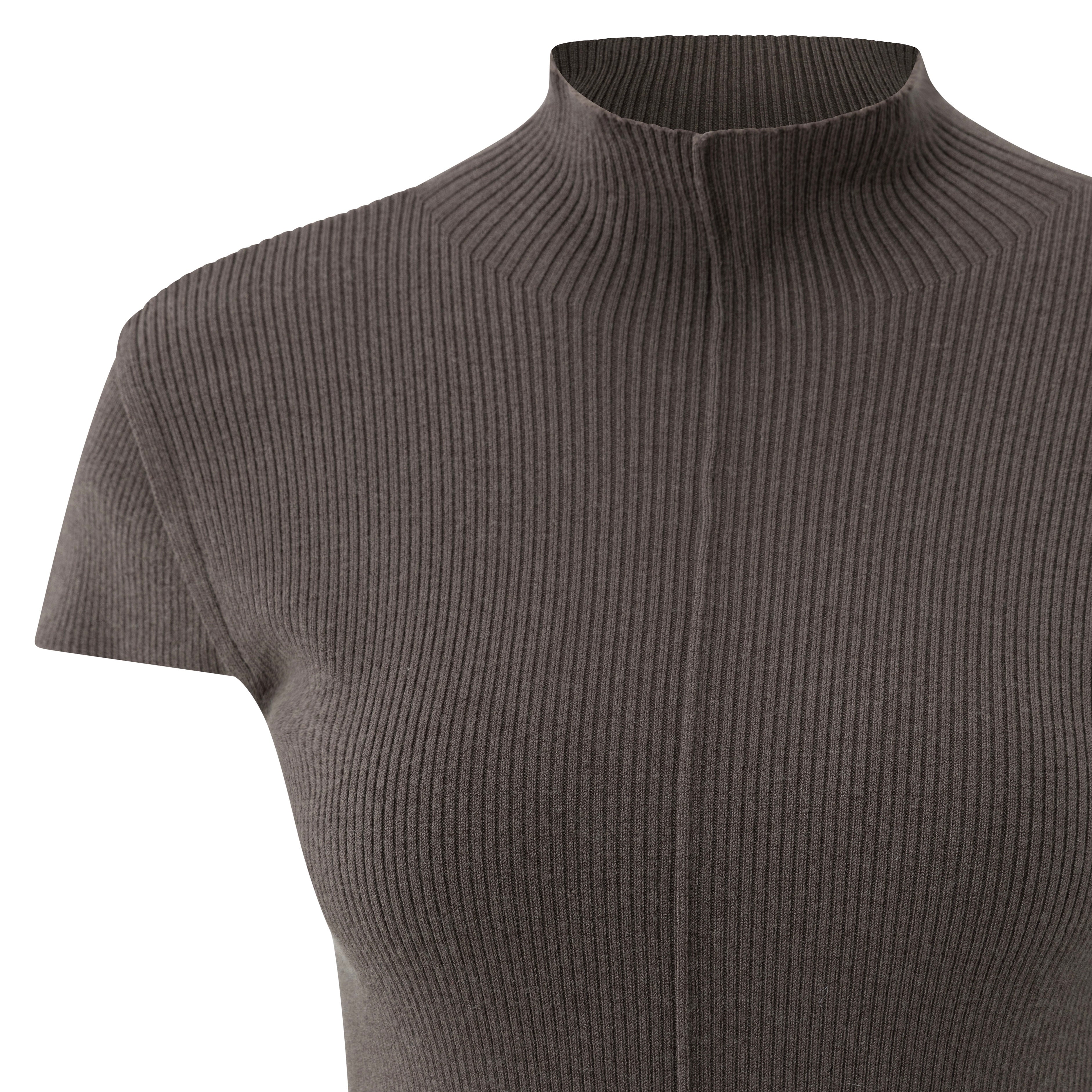 YAYA Dark Taupe Grey Fitted Ribbed Sweater With Front Seam